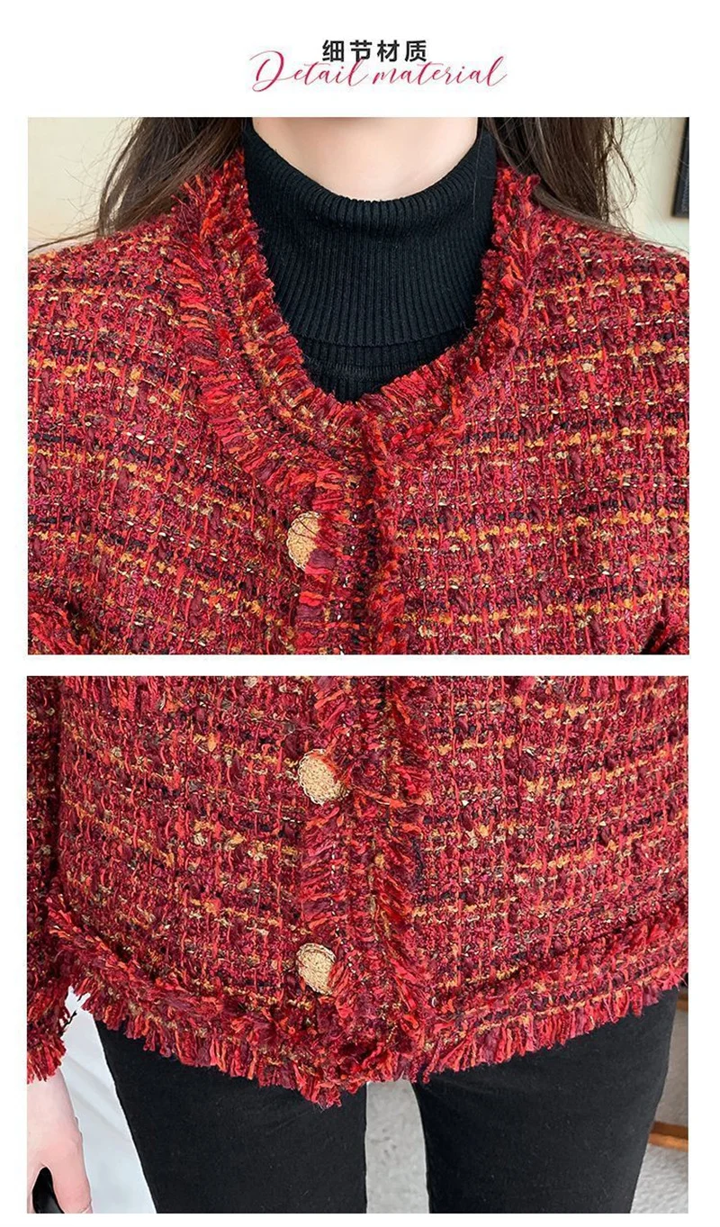 2023 Autumn New French High end Temperament Red Fragrant Coat Women's Short Thick Tweed OutwearFashion Women Slim Thicken Jacket