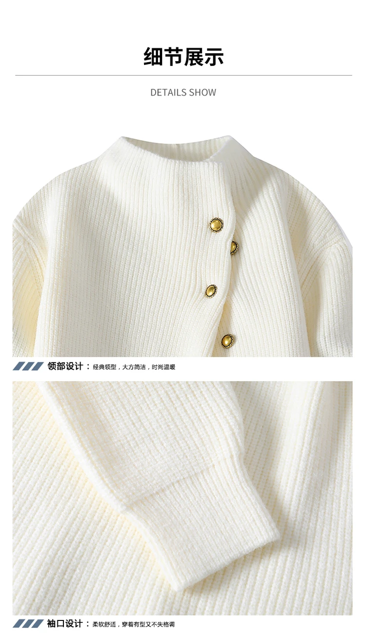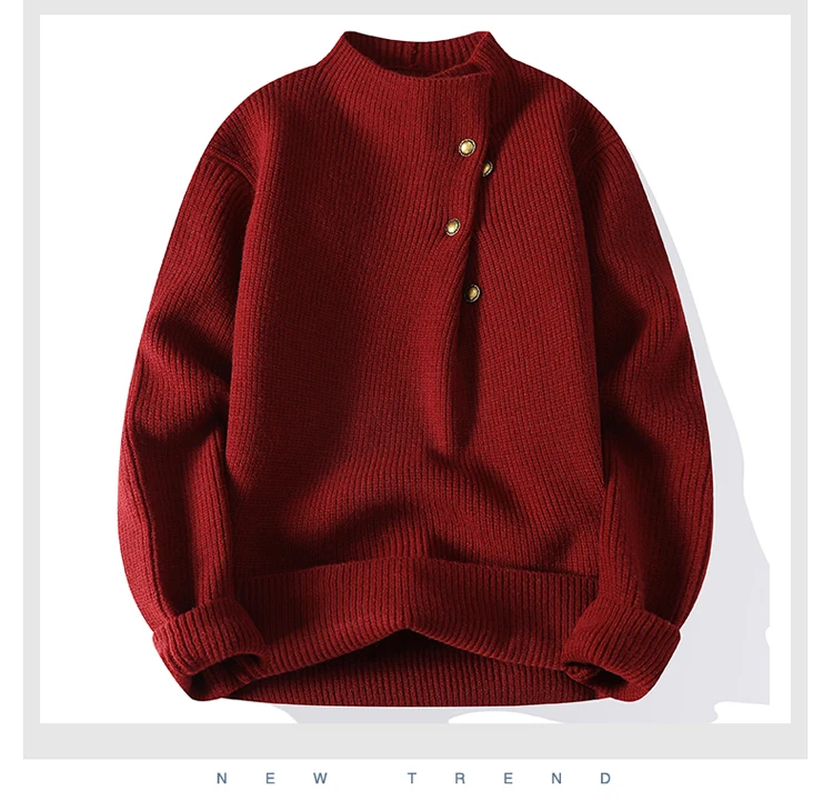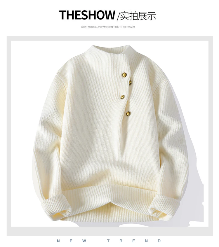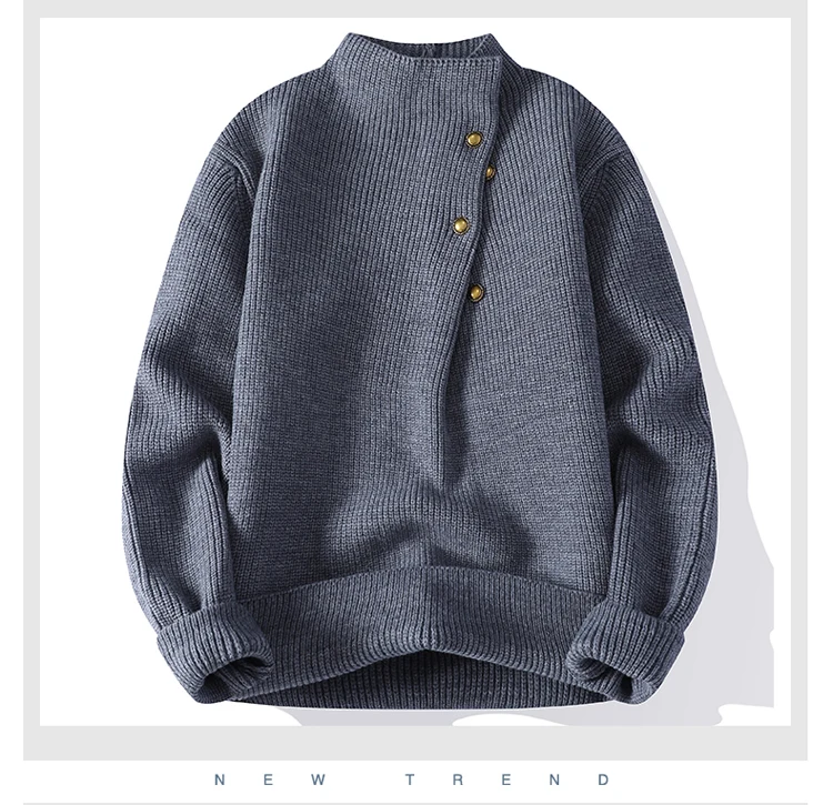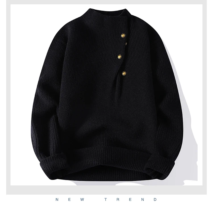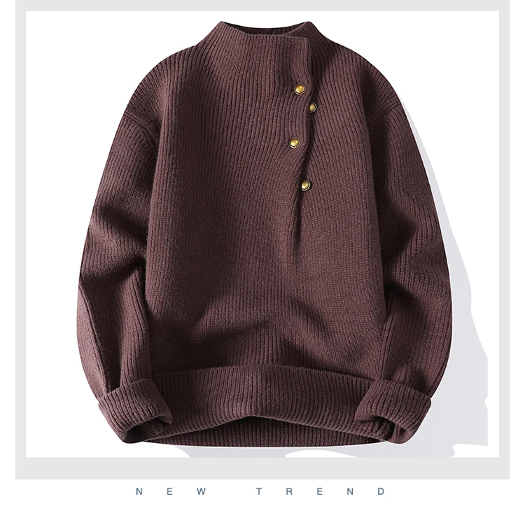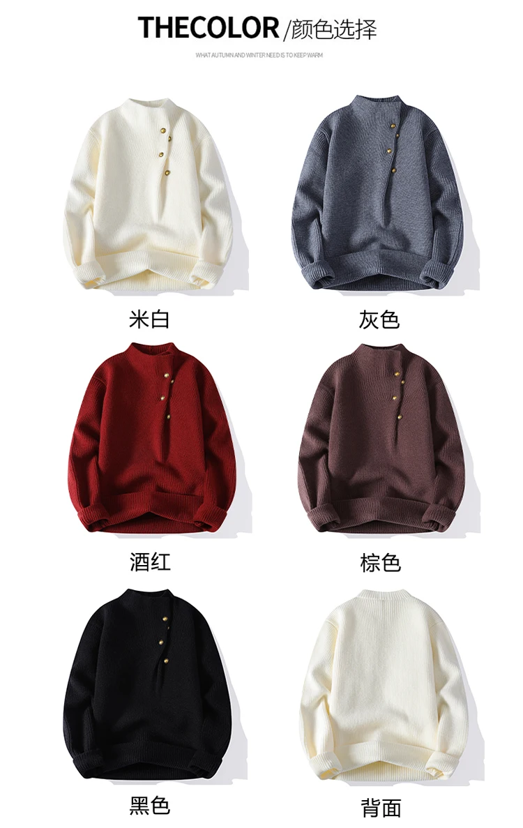 2025 Autumn Winter Basic Solid Colour Pullover Sweater Men's Knitted Sweater Button Design Knitted Top Soft Versatile Sweater