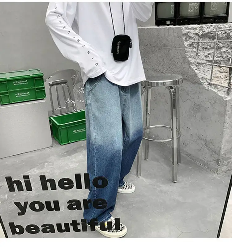 High Street Jeans Straight Leg Loose Flare Pants Men's Cargo Trousers Mens Designer Clothes Y2k Style Pant Male Man Denim Flared