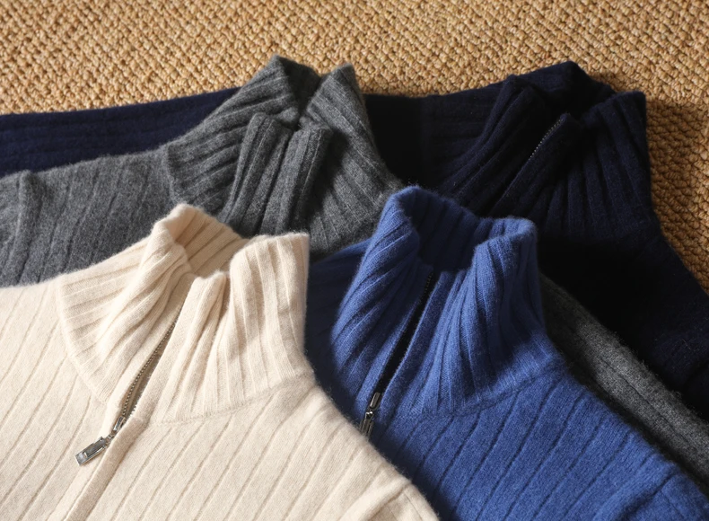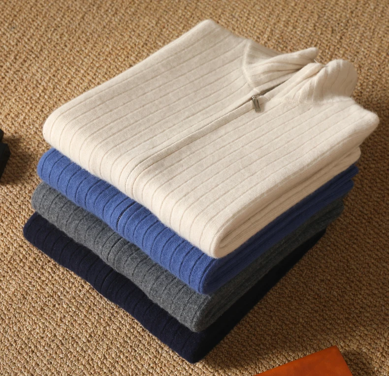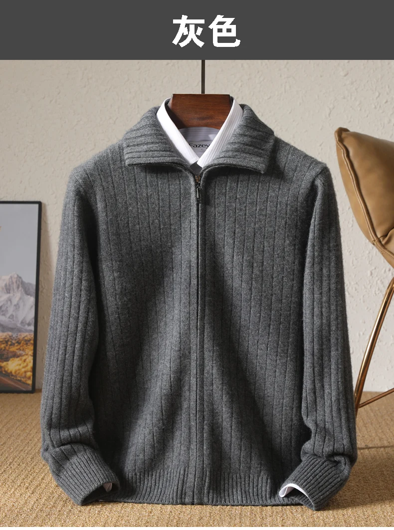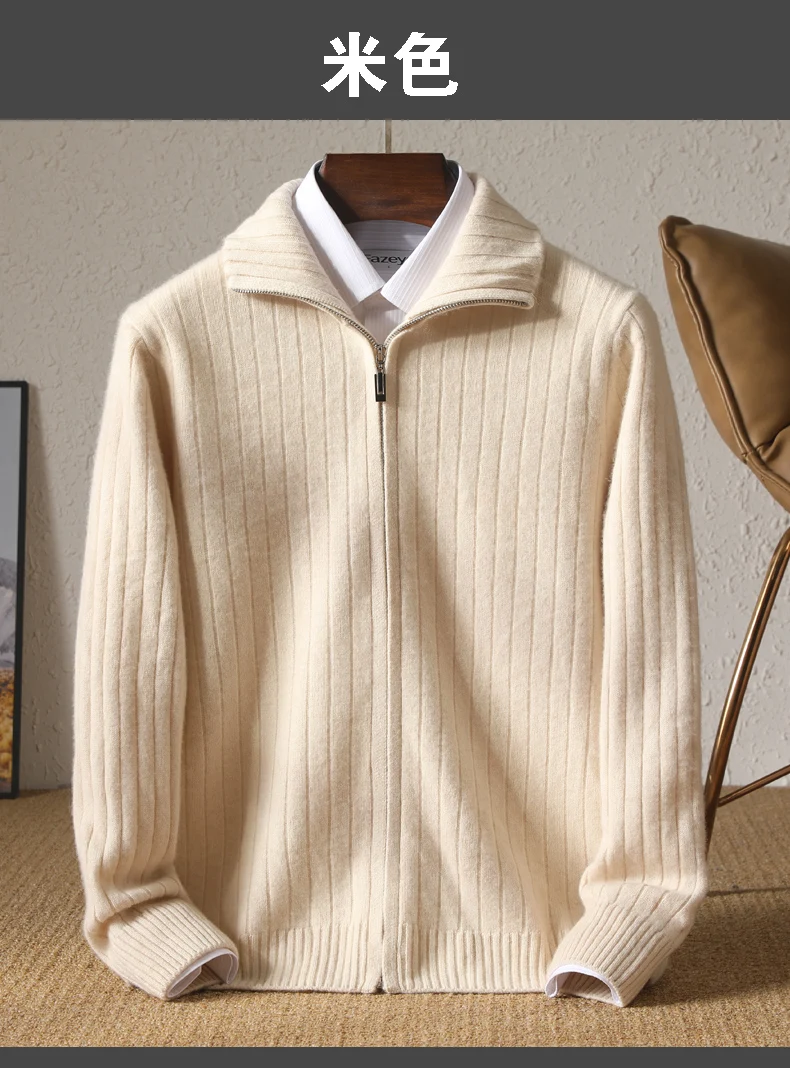 Men 100% Merino Wool Stand-Up Collar Cardigan Casual Knit Business Zipper Coat Autumn Winter Versatile Warm Men Cashmere Jacket