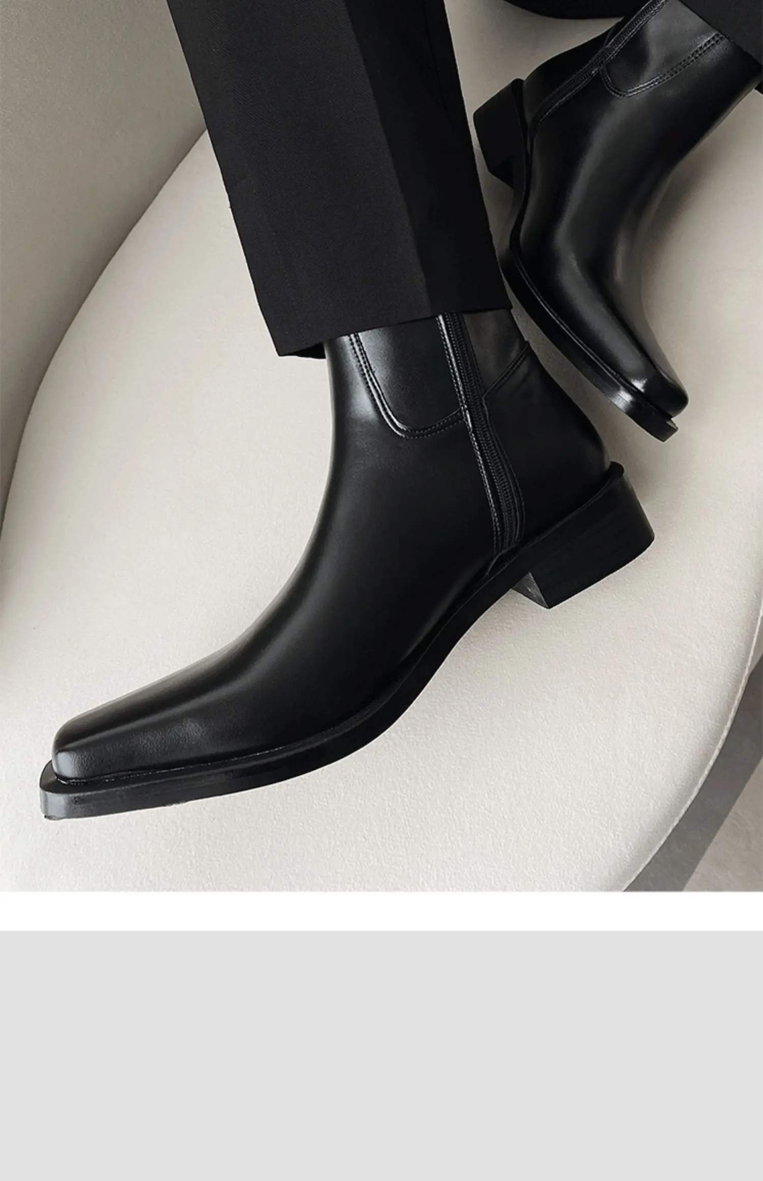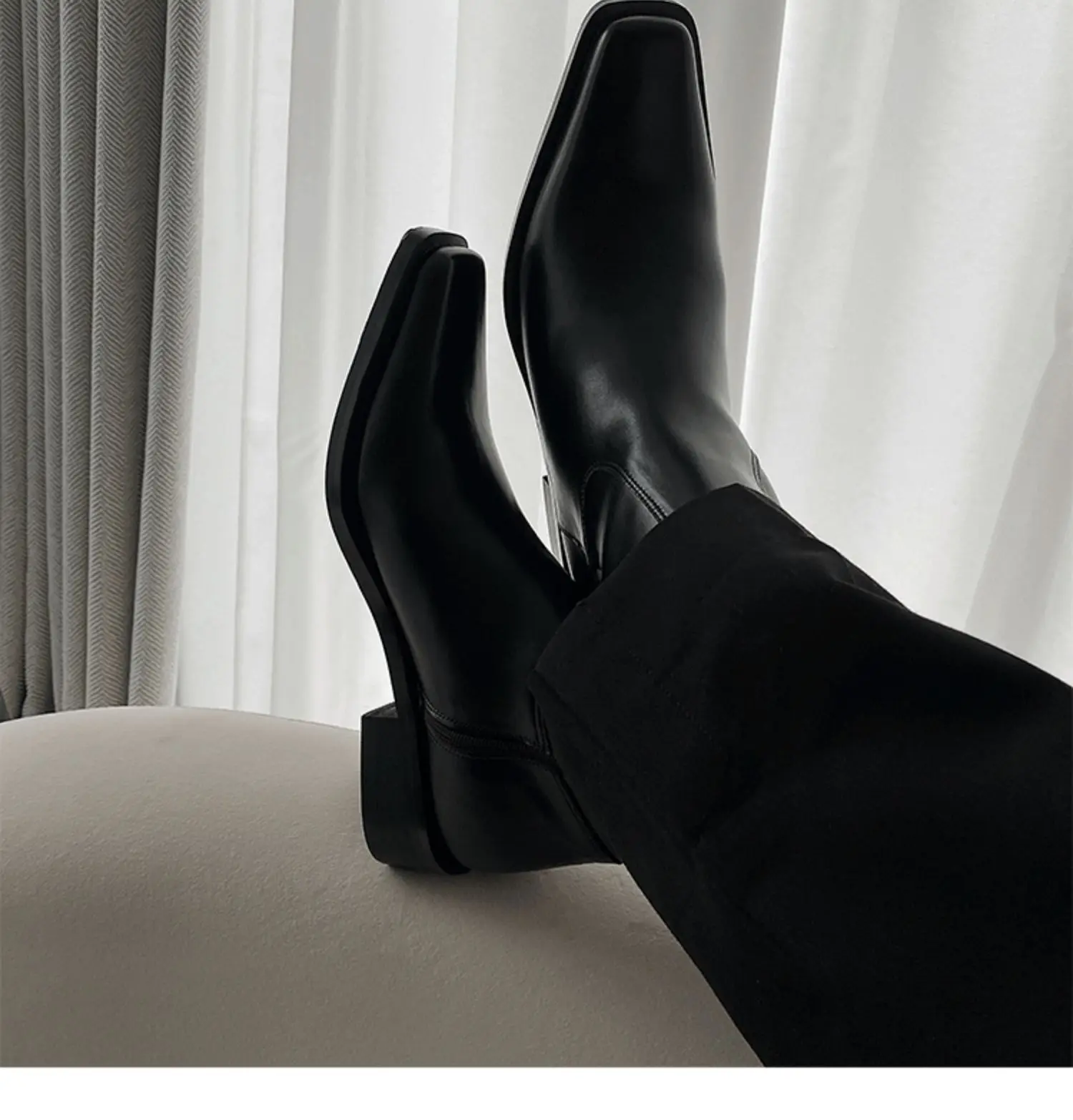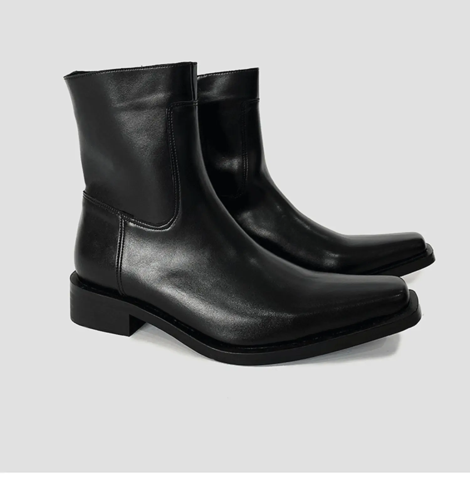 Original design small square Chelsea boots for men's new high-end short boots feminine temperament unisex motorcycle boots