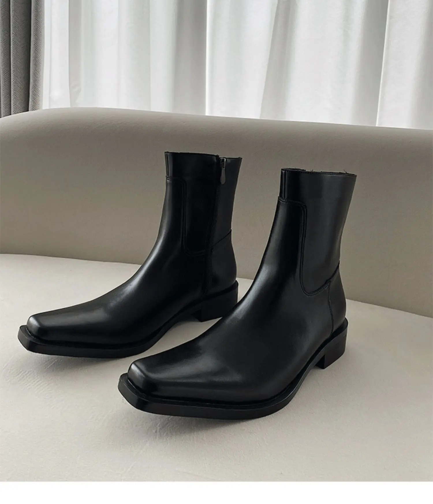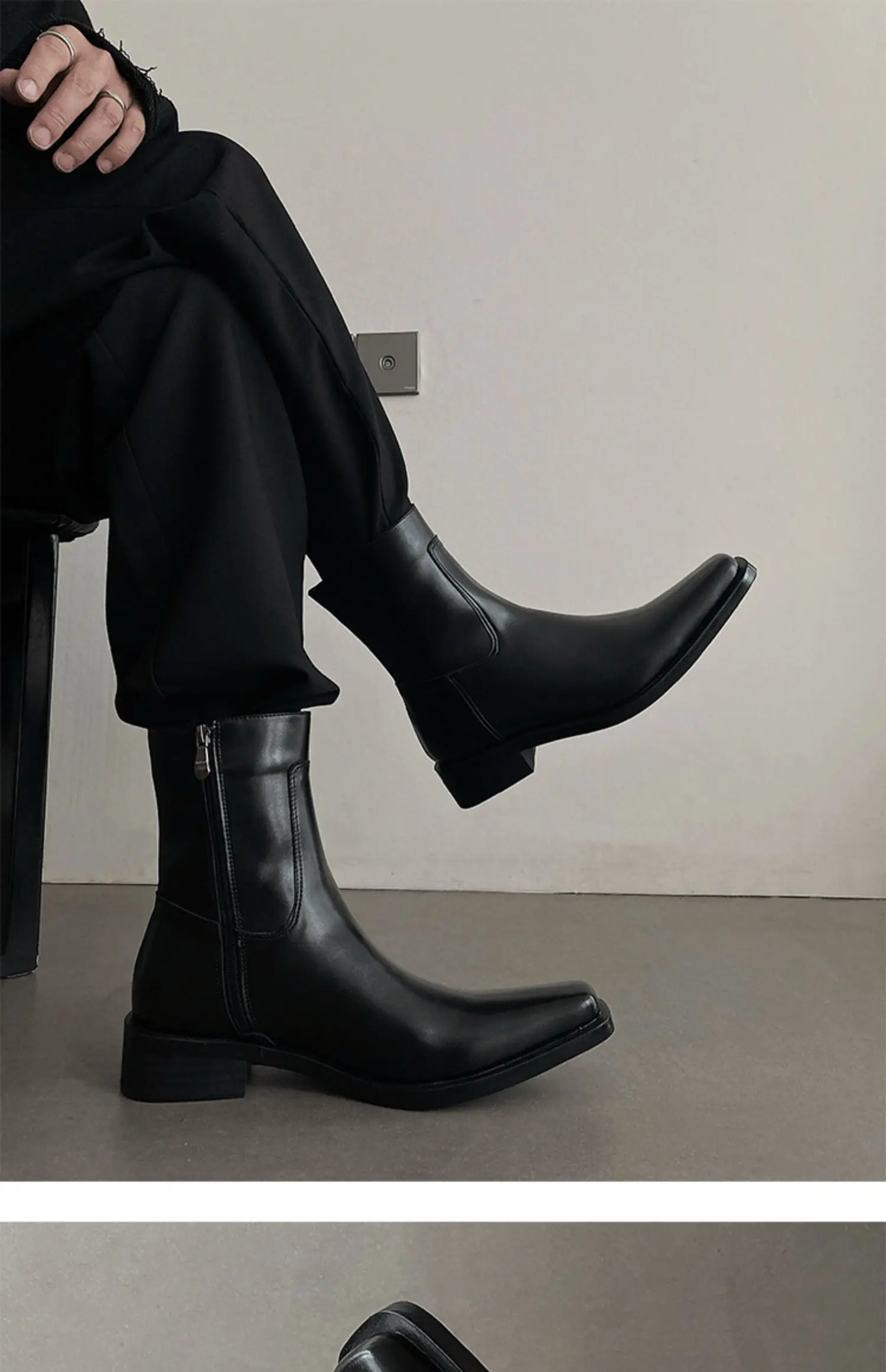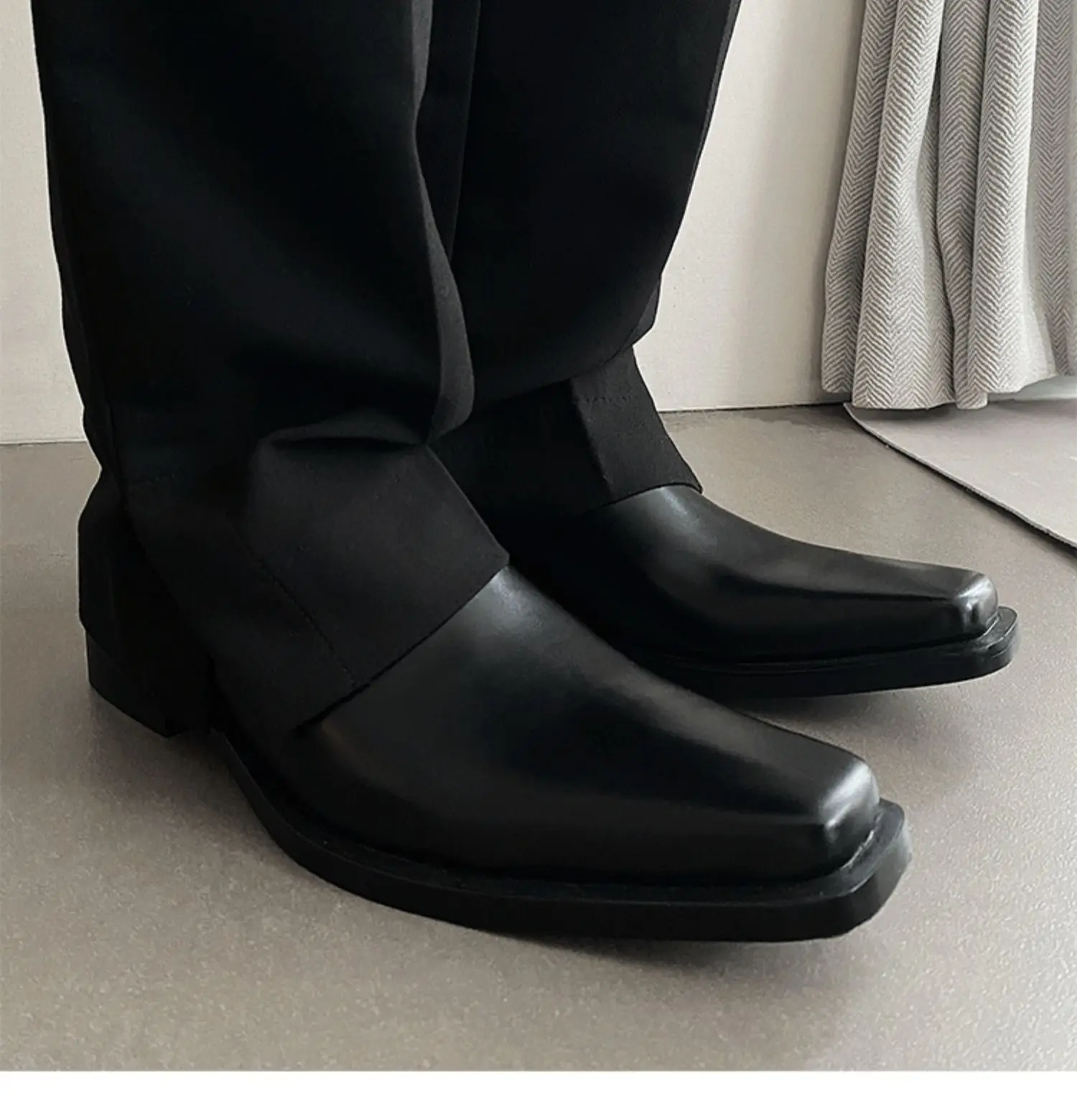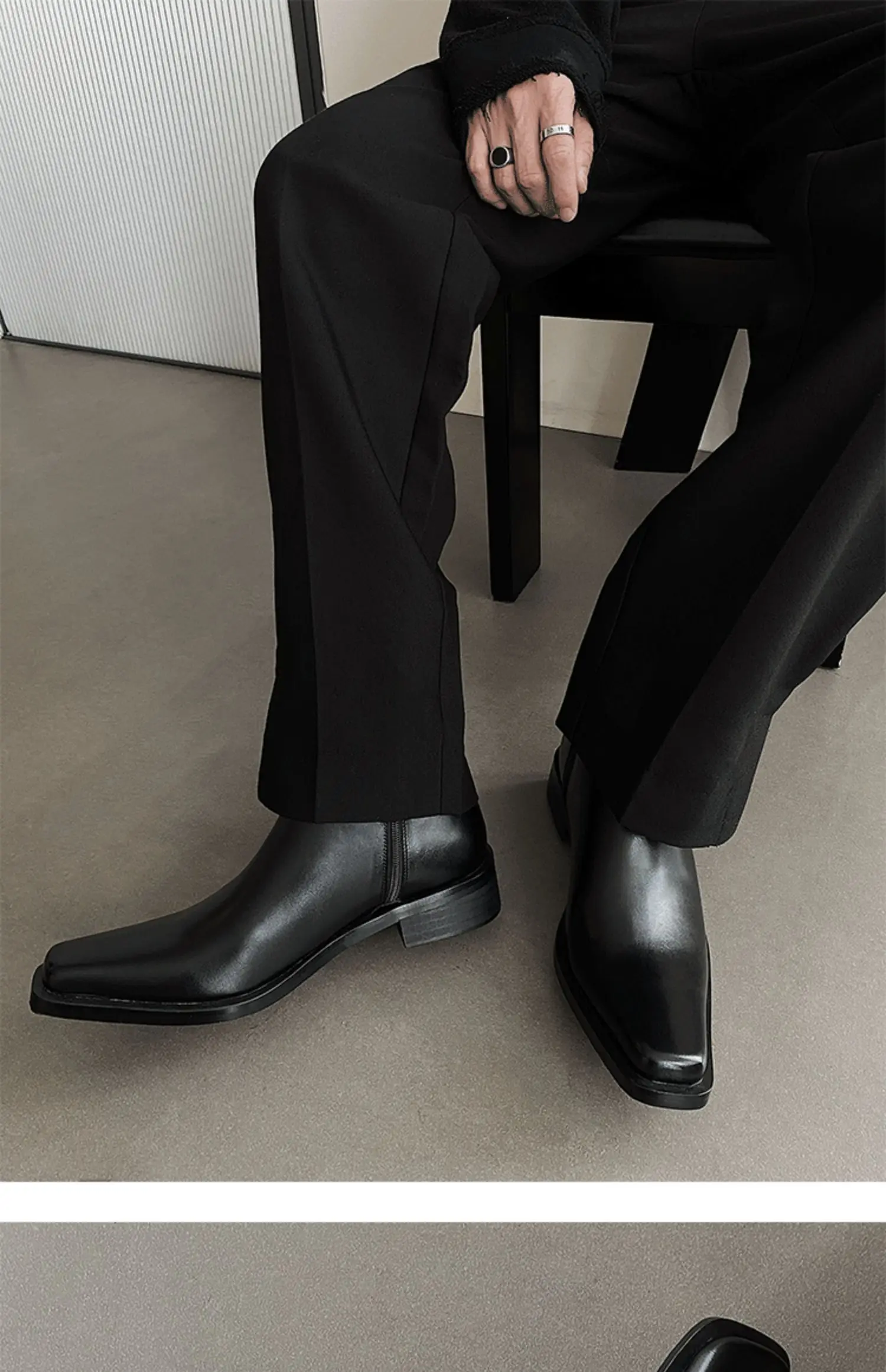 Original design small square Chelsea boots for men's new high-end short boots feminine temperament unisex motorcycle boots