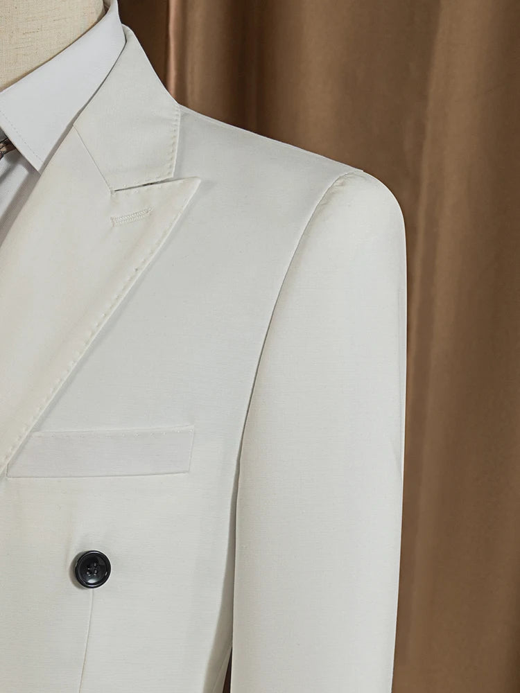 ST cassy 2 Piece White Double Breasted Suit Set Business Wedding Outfit Classic Stylish Blazer Pants Trendy Elegant