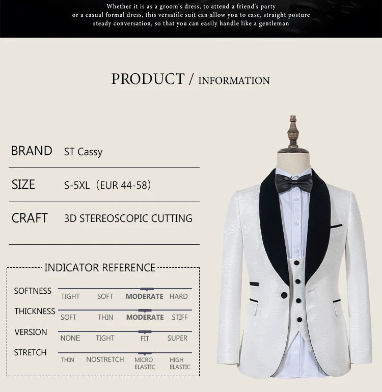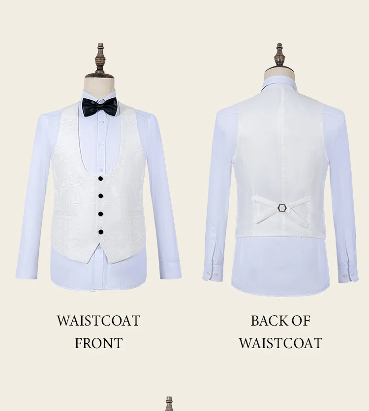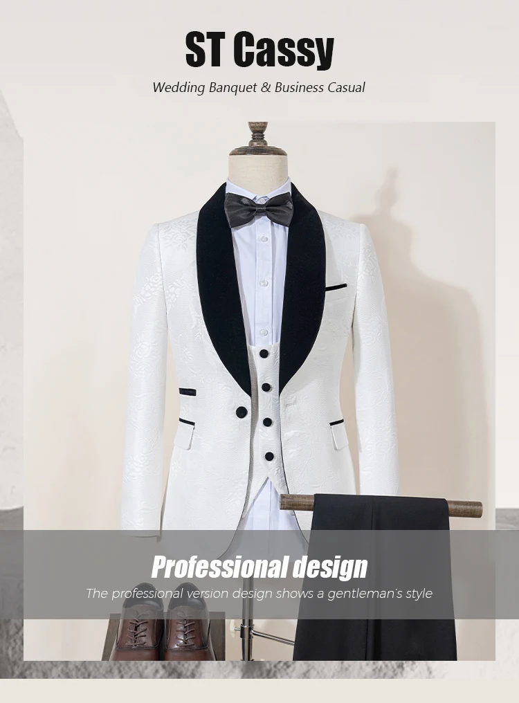 ST Cassy High Quality luxury Retro carving Party Dress Slim Fit Tuxedo Prom Suit Fashion white Male Groom Wedding three-piece