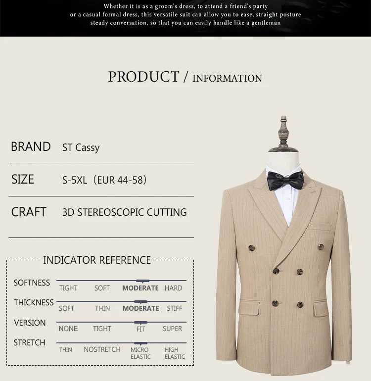 ST Cassy High quality striped suits for men slim fitting luxury man clothing elegant mens suit Wedding trends costumes