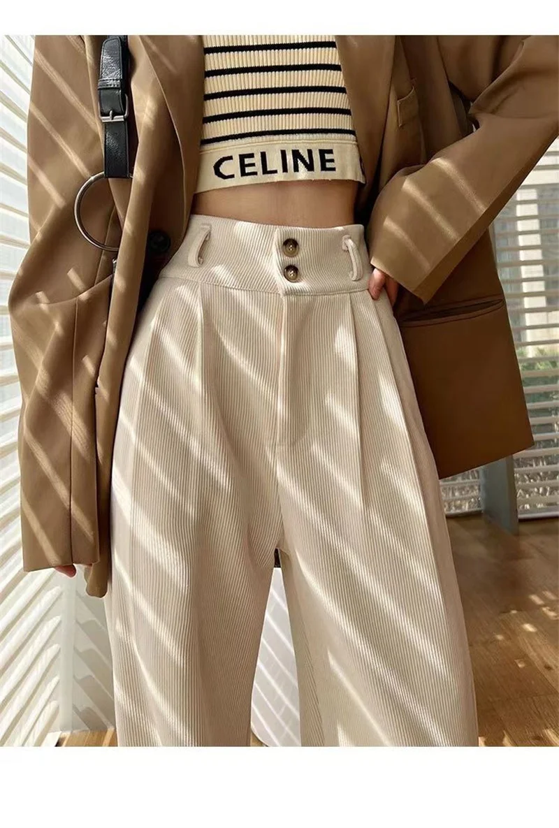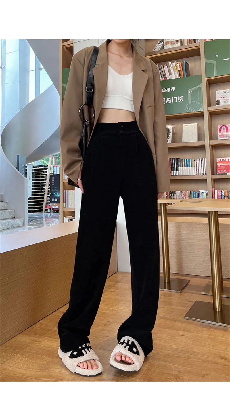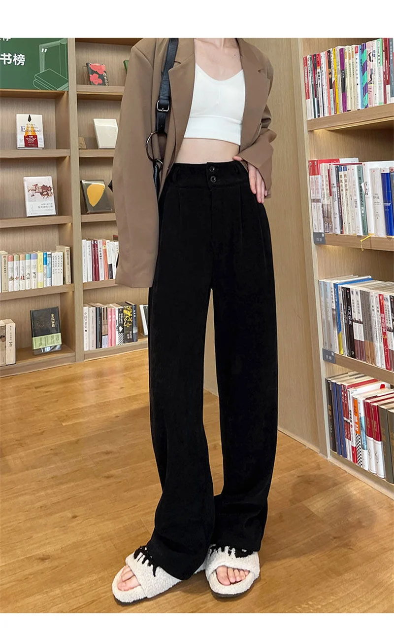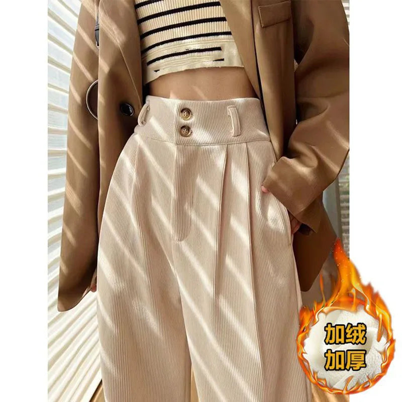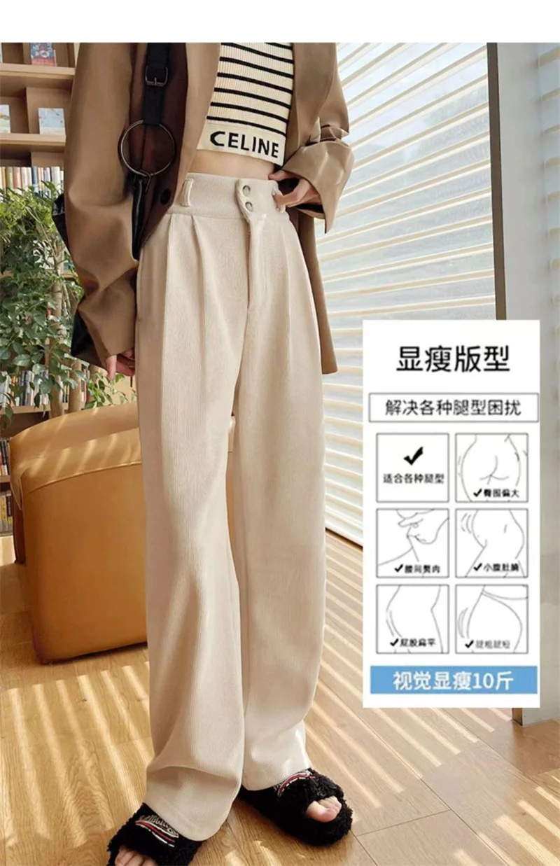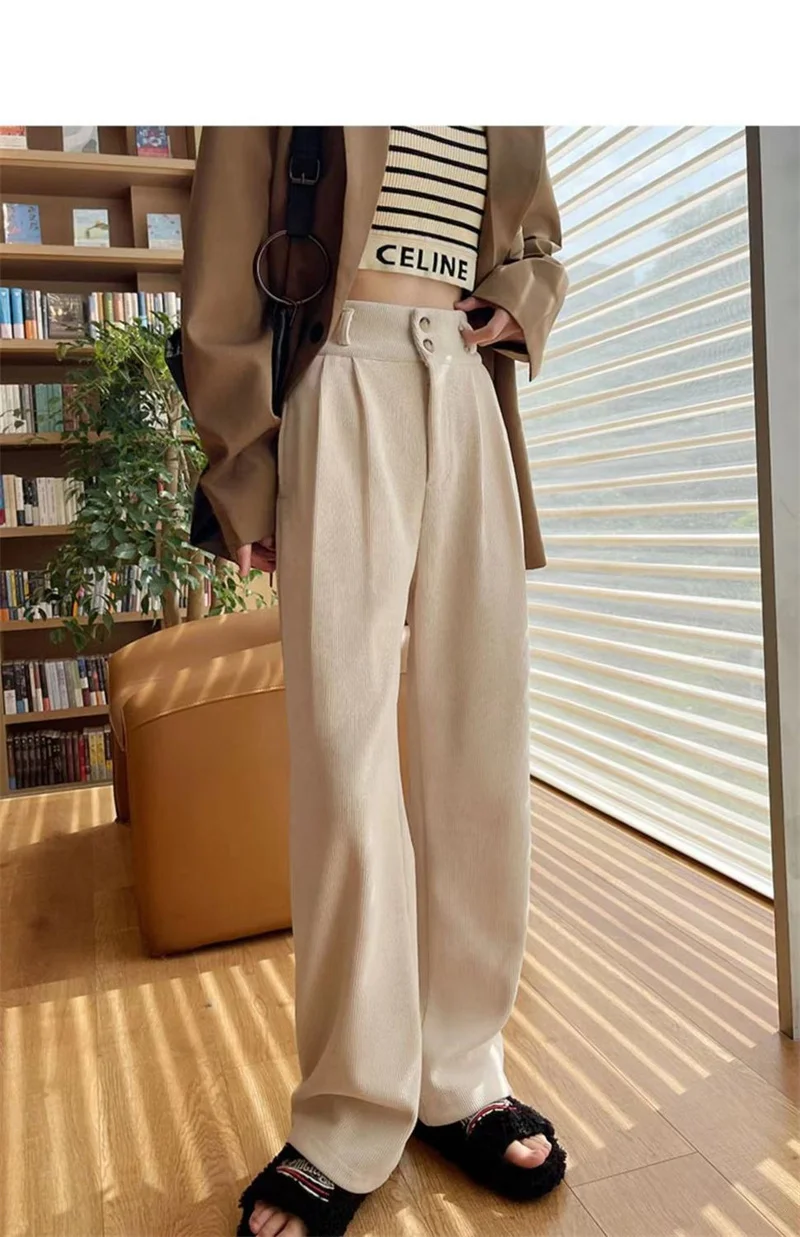White Corduroy High Waisted Wide Leg Pants For Women Autumn And Winter Velvet Straight Leg Pants Floor Chenille Suit Trousers