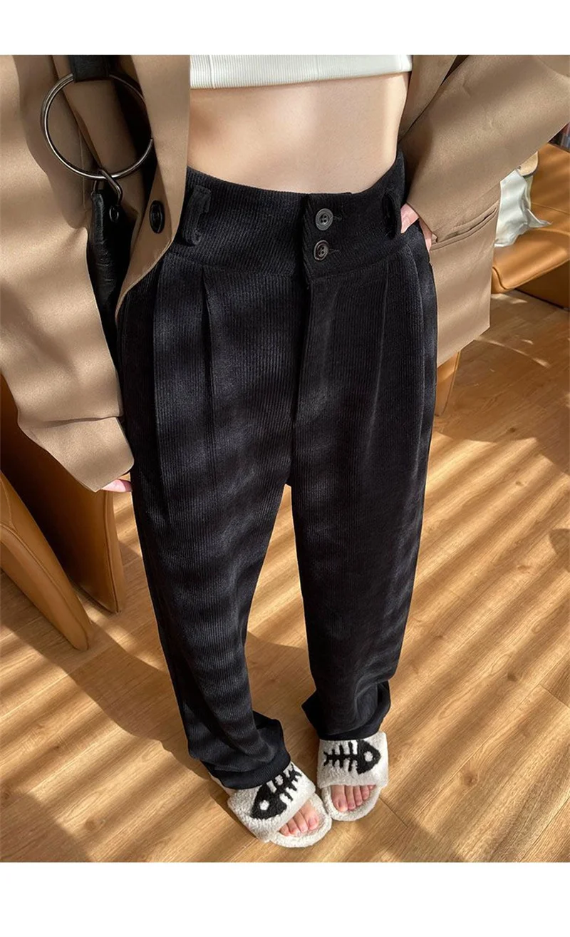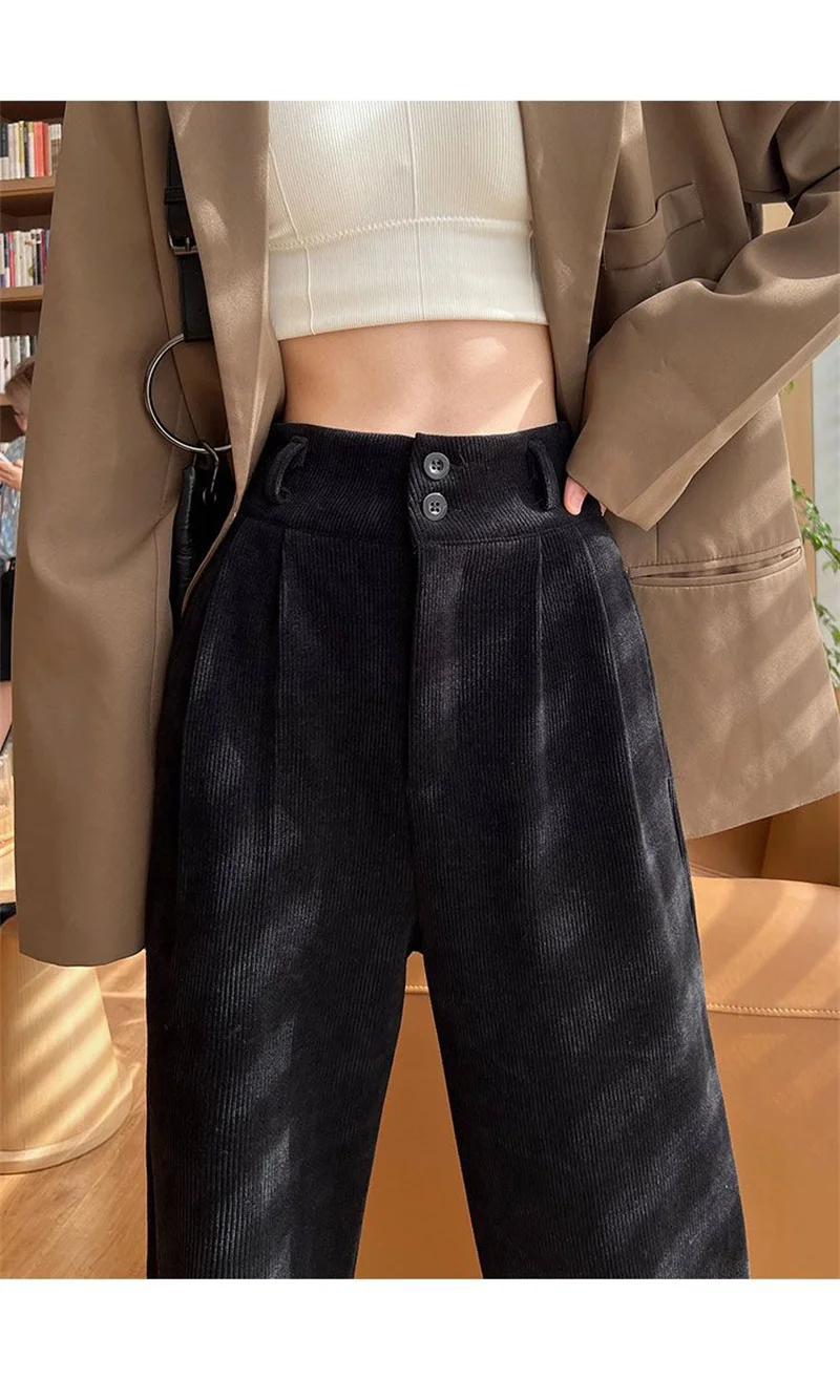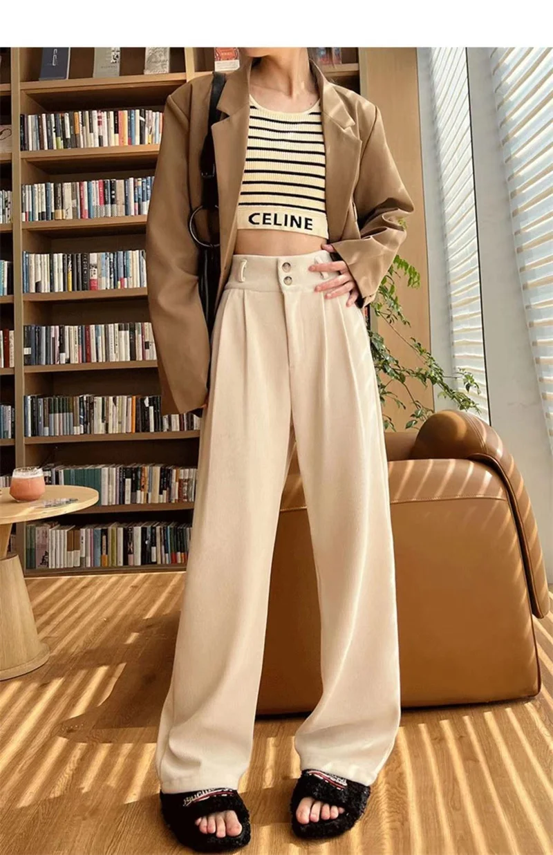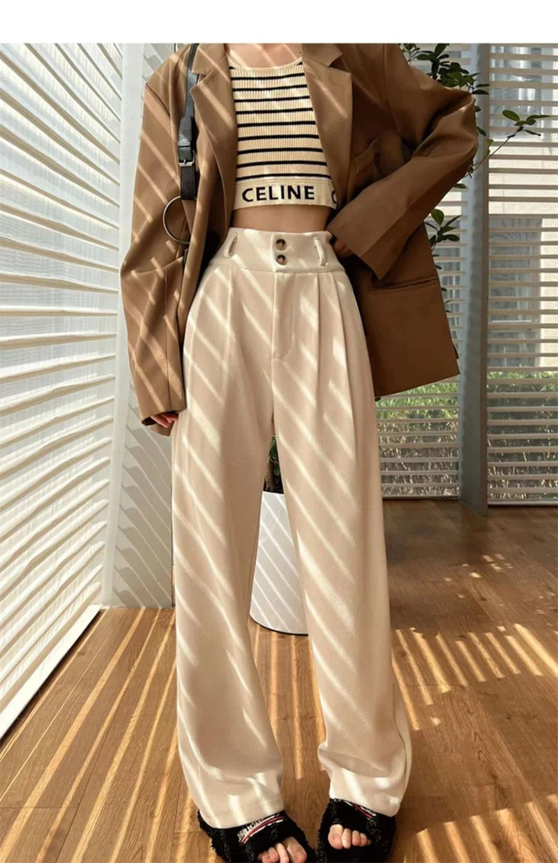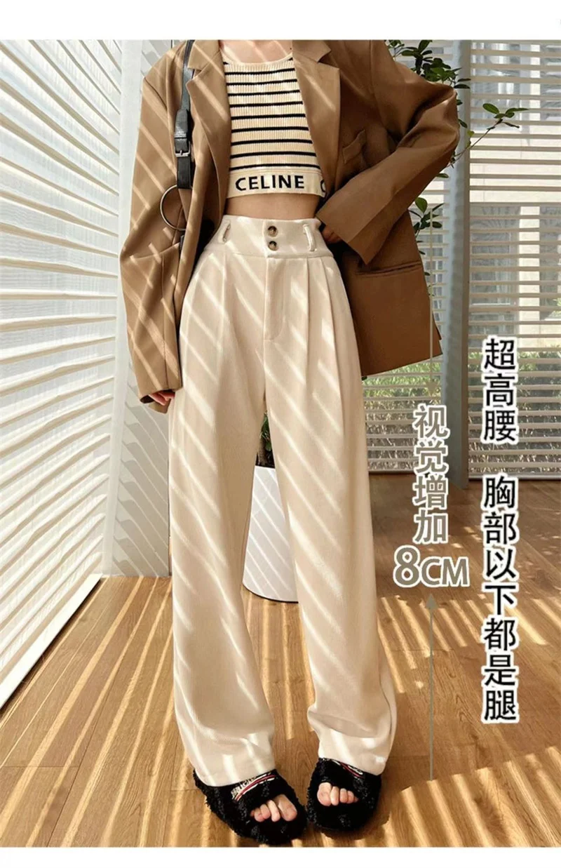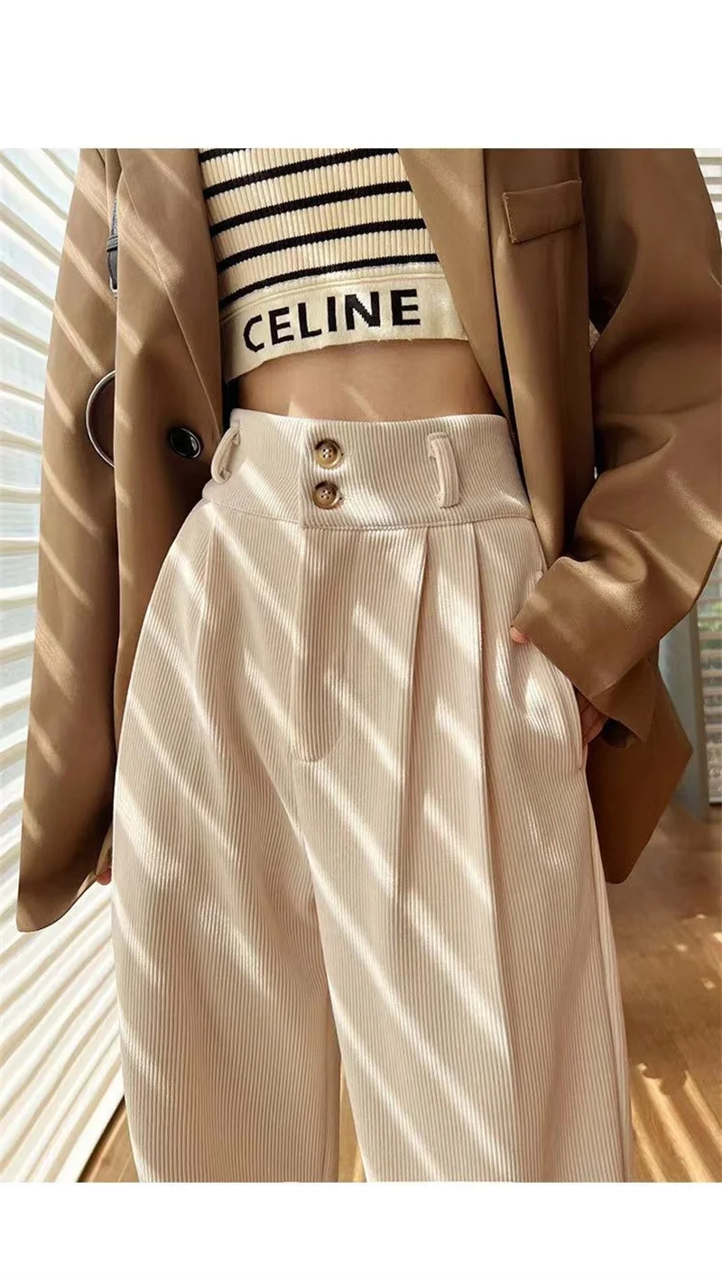 White Corduroy High Waisted Wide Leg Pants For Women Autumn And Winter Velvet Straight Leg Pants Floor Chenille Suit Trousers